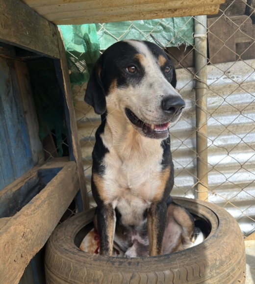 Et Bien, moi je suis la force tranquille du refuge, je suis calme et posé. Le stress ne m’atteint pas, même si parfois, je dois lever un peu la voix pour préserver ma calmitude. En vivant avec des ados, jeunes adultes, fougueux et hystériques parfois, je prends sur moi et je montre l’exemple. Je vivais dans un hôtel de luxe et je me suis fait jeter comme une poubelle près des champs de canne non loin de Indie’s World avec une copine. Heureusement pour moi, Indie’s a pu me récupérer. Normalement, j’aurais dû rejoindre ma plage mais ils sont tombés amoureux de moi. C’était bizarre au début, je ne comprenais pas trop ce qui m’arrivait mais j’ai réussi à trouver ma place. Je suis doux malgré ma stature de chien fort, j’aime les balades, les câlins, les regards langoureux. Je ne suis pas bagarreur pour un sou, pour moi la vie est un long fleuve tranquille, vous pourriez penser que je suis triste parfois mais détrompez-vous, je suis juste un maître zen. Je suis top avec les enfants, ils le